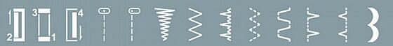 תפר ישר, תפר ישר בשמאל, זיג-זג, לולאות, זיג-זג 3 צעדים, מכפלת אלסטית, ניסתר, אוברלוק רב שימושי,שלשה מחוזק, שלשה מחוזק בשמאל, שלשה מחוזק זיג-זג, כוורת, פלורנטיין, אוברלוק מחוזק, אוברלוק סטרץ''. והרי הטכניקות: רוכסן, כפתורים, קיפול קצה, מילוי קרעים, אפליקציות, מחט כפולה, walking foot, סמוקינג, פגוטינג, רוכסן צינור, רוכסן ניסתר, קורדינג, בד שחוק, מונוגרמות, רקמה חופשית, כיווץ ועוד..